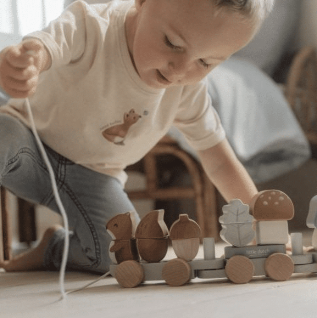 Deze prachtige houten blokkentrein van het merk Trixie (Eekhoorn Forest Friends met naam) is gemaakt van duurzaam FSC gecertificeerd beukenhout en is een echte must have voor bewuste ouders die kiezen voor duurzaam en verantwoord speelgoed. De stevige kwaliteit en het tijdloze ontwerp zorgen ervoor dat dit speelgoed jarenlang meegaat
