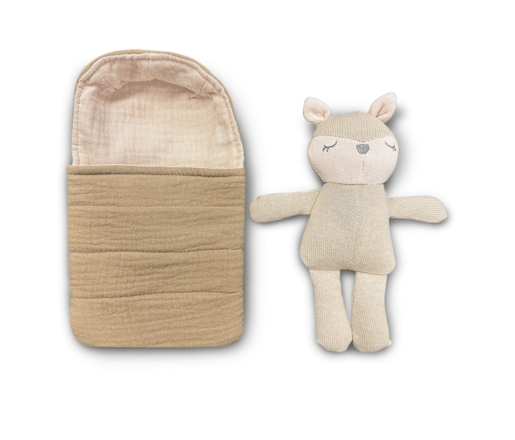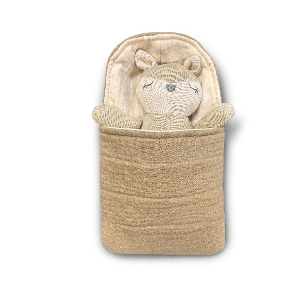 Maak van elk moment een knuffelbaar moment met dit lieve katoenen knuffeltje in slaapzak
