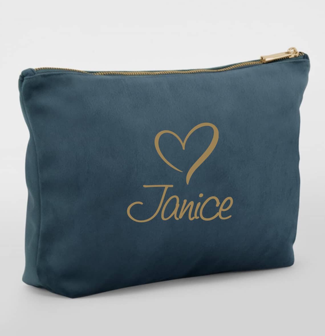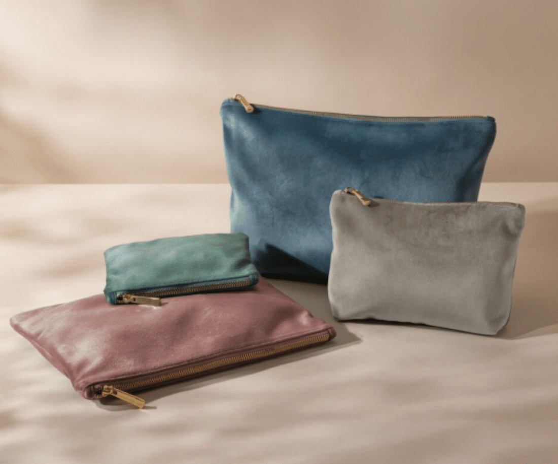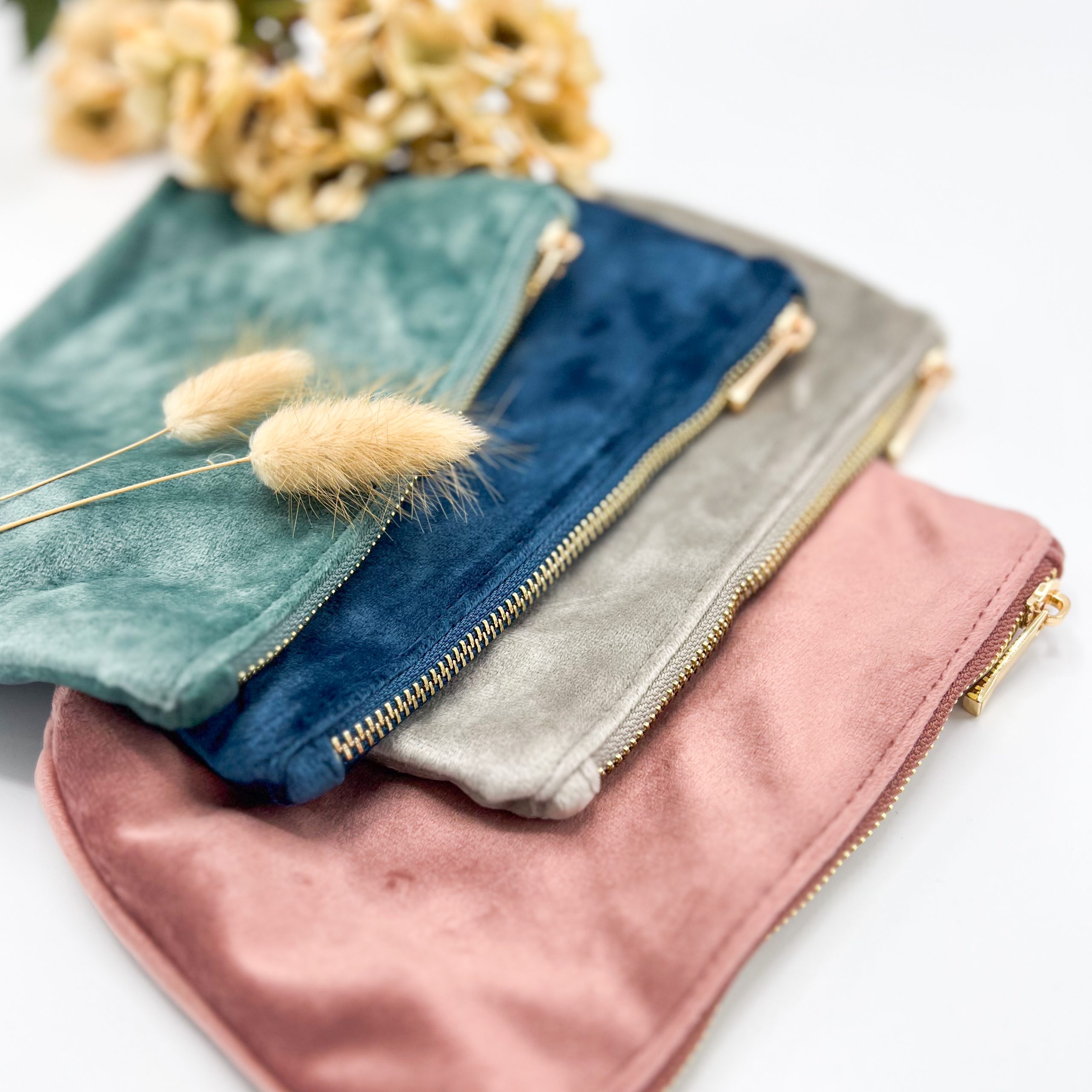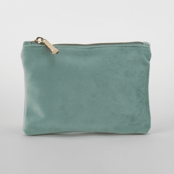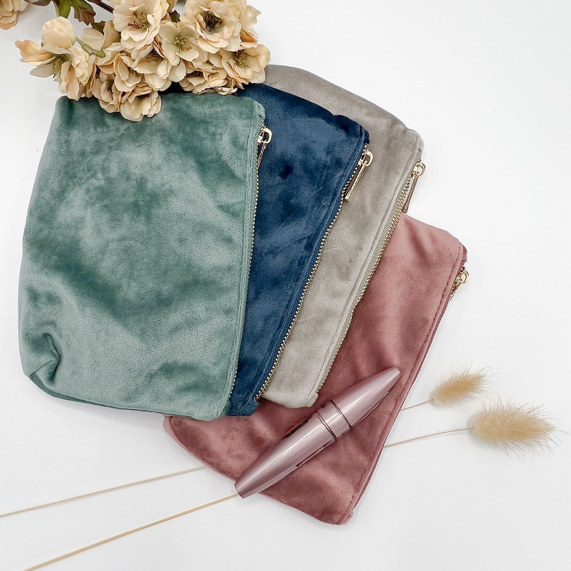 De make up tas is gemaakt van Recycled Velvet Polyester , uitgerust met ritssluiting (afmeting 27.5 x 20 x 7 cm) voor al jouw verzorgingsitems.