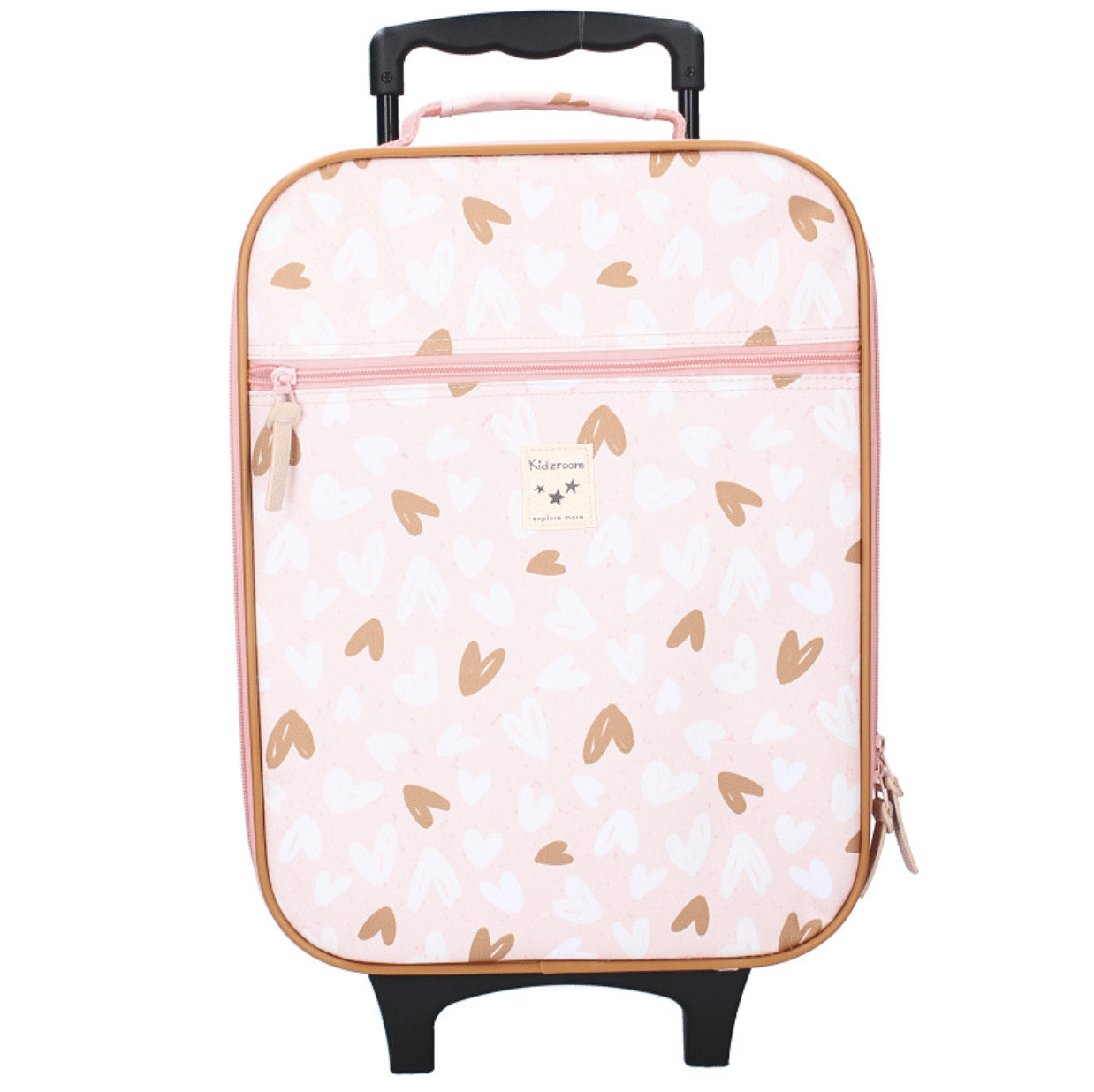 Op reis gaan wordt een nog groter feestje met deze trolley van Kidzroom uit de ‘Loving Days’ collectie. Vanaf nu kan jouw kind zijn of haar vakantie spullen zelf meenemen en kun je de koffer eenvoudig herkennen door de gave print. Het grote hoofdvak biedt voldoende ruimte voor zwemkleding, speelgoed en zonnebrand. Maar daarnaast passen ook de nodige normale kledingsetjes en schoenen erin. De trolley koffer is groen van kleur en voorzien van een all-over print met hartjes. Door middel van de dubbele ritssluiting kun je eenvoudig bij de nodige spullen. Het handvat is uittrekbaar en de twee wieltjes zorgen ervoor dat de trolley makkelijk voort te trekken is. De koffer beschikt verder over een voorvak met ritssluiting voor kleinere items zoals ondergoed en verzorgingsproducten.